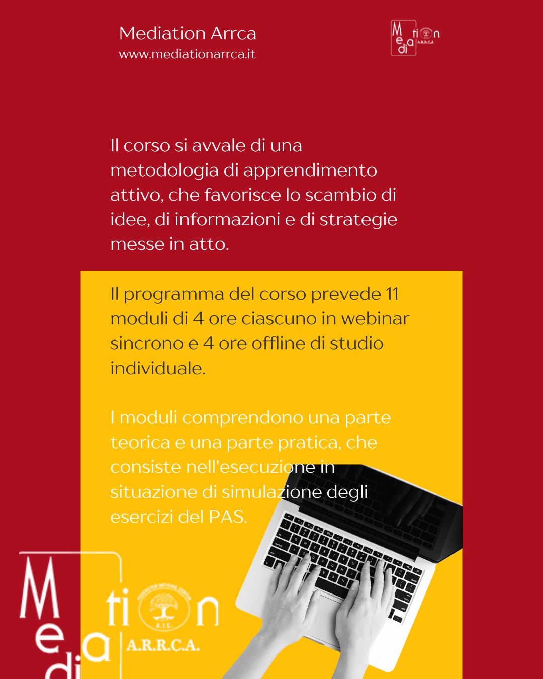 Il programma del corso PAS Basic Livello 2 prevede 11 moduli di 4 ore ciascuno in webinar sincrono e 4 ore offline di studio individuale. I moduli comprendono una parte teorica e una parte pratica, che consiste nell’esecuzione in situazione di simulazione degli esercizi del PAS. Il corso si avvale di una metodologia di apprendimento attivo, che favorisce lo scambio di idee, di informazioni e di strategie messe in atto. Alle lezioni interattive si alternano esercitazioni pratiche: il formatore presenta il tema dell’attività all’intergruppo, suddivide i partecipanti nelle aule virtuali che lavorano autonomamente per un tempo definito. Visita le singole aule fornendo supporto e stimoli e guida alla condivisione finale dei risultati da parte dell’intero gruppo. Le sessioni di studio individuale sono seguite, all’inizio del modulo successivo, da una presentazione e discussione collettiva del lavoro svolto offline.